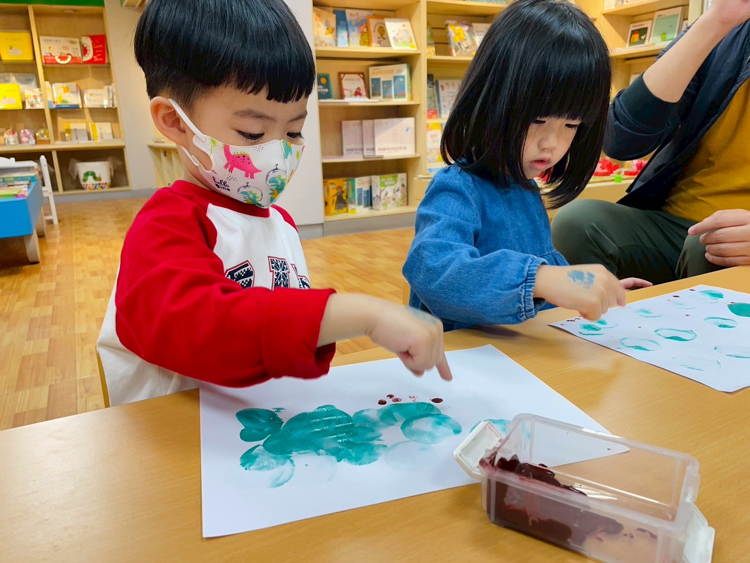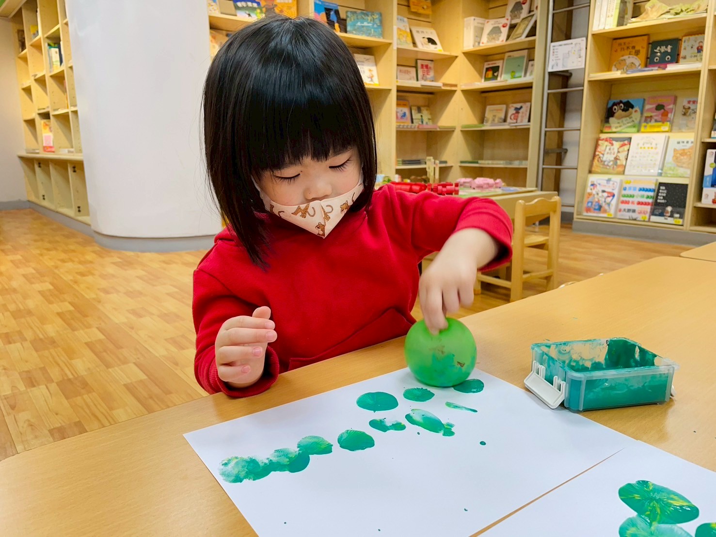 聽完這本最受歡迎的繪本後,孩子們將用小汽球沾上顏料,在紙上印出胖嘟嘟的毛毛蟲~