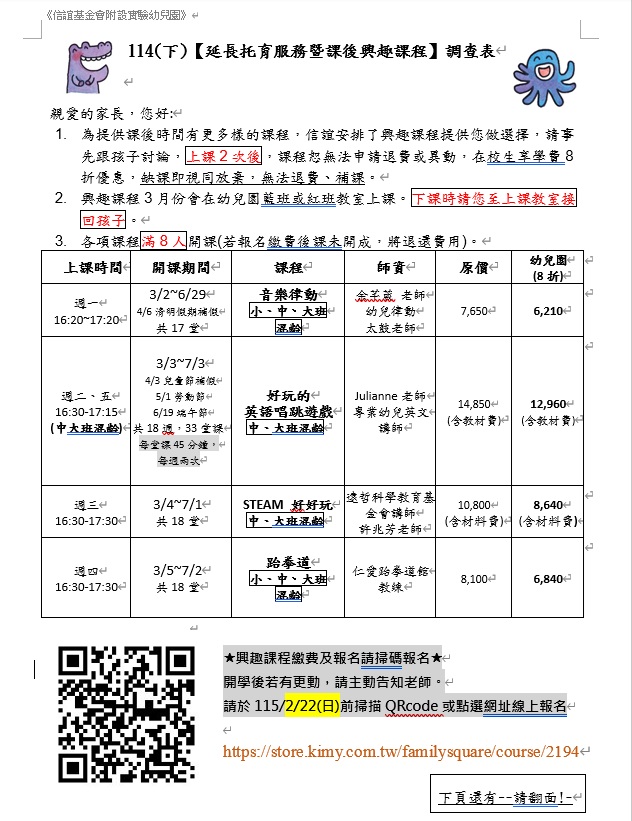 - 114下幼兒園課後興趣課程