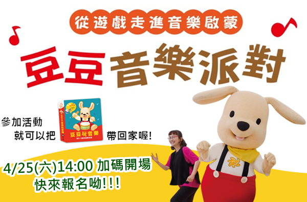 | 豆豆音樂派對 | 4/25(六) | 10:30 | 450 | 已額滿 | ||