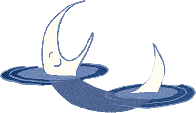 貓咪之島又是完全不同的風景。放眼望去,白貓、橘貓、虎斑貓,舒服的泡在滑順的牛奶池裡,遠方的火山口不斷的湧出香濃的牛奶噴泉。岸邊有幾隻貓人魚正在岩石上作日光浴,還有一隻白貓慵懶的躺在珍珠貝殼裡,好像在說:「貓咪最擅長的就是無所事事啊!」令人莞爾的是,島上居然還有個酒吧,幾隻貓客人手裡還握著杯子,一副因為喝了太多牛奶而醉醺醺的模樣,是不是很像日劇裡面,喝到深夜還不願意回家的歐吉桑?