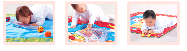 從寶寶會趴臥開始,遊戲毯就是很好的輔助工具。本項產品將嬰兒遊戲毯做了多重的運用,一面是針對寶寶在視覺發展上,最初對黑白對比色及輪廓會產生較多注意力的特性,而設計出可愛的黑白圖案掛飾,並以寶寶日常生活中較常見或喜好的用品及動物圖像為主,提供良好的視覺刺激,增進敏銳度,到了牙牙學語階段還可以運用這些圖案教他學習新詞彙。