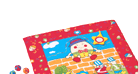 遊戲毯的另一面則設計出色彩豐富的情境圖,空中的白雲、小鳥、蝴蝶,地上的蘋果樹、小貓咪,池塘裡的青蛙、小魚和荷葉,處處都可探索、把玩。小鳥和荷葉抓握時會發出玻璃紙摩擦的聲音;小青蛙能當作小搖鈴;樹上的5顆紅蘋果可以反覆拔下及粘黏;還有一個太陽形狀的鏡子,可讓好奇的寶寶觀察鏡中的自己。遊戲過程中,除了滿足視覺、聽覺、觸覺等多樣化的感官經驗外,對於手部的抓握、手眼協調都有益處,當寶寶俯趴在毯子上或坐在毯子上玩的意願提升時,更能加強他頸部、背部和身體肌肉的支撐力。 |