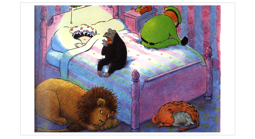 管理員和動物們一一道晚安後,就回家睡覺;但當他和太太說晚安時,同時也聽到好多的聲音說︰「晚安」…這是一本充滿歡愉與想像力的經典床頭書,主角猩猩就像是個頑皮孩子!